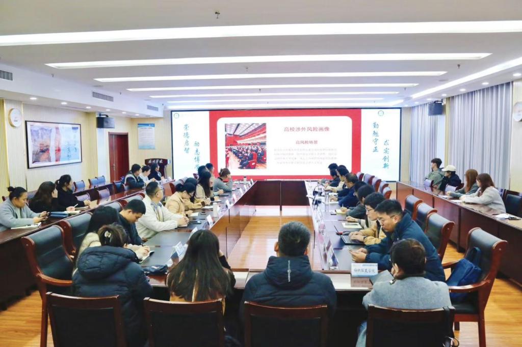 刘印房副校长首先对德州市安全局长期以来给予学校外事工作的指导与支持表示衷心感谢。他指出,本次培训聚焦“筑牢涉外安全底线、强化外事纪律与外交规范”主题,旨在进一步提升全校外事队伍的政治素养、安全意识和应对复杂国际形势的能力,为学校高质量发展提供坚实保障。他提出三点要求:一是强化政治引领,把牢外事工作“方向盘”,要旗帜鲜明讲政治,坚守国家主权、安全、发展利益底线,筑牢意识形态阵地,自觉将外事工作融入国家战略大局和学校发展全局;二是强化风险防控,当好外事安全“守护人”,要建立健全涉外风险研判、监测预警和应急处置机制,压实管理责任与监督问责链条,提升服务精细化水平,从制度层面筑牢安全屏障;三是强化纪律约束,拧紧外事活动“安全阀”,外事工作人员要严格履职尽责,严守外事纪律、保密纪律和廉洁纪律,确保每一项涉外活动合规有序。